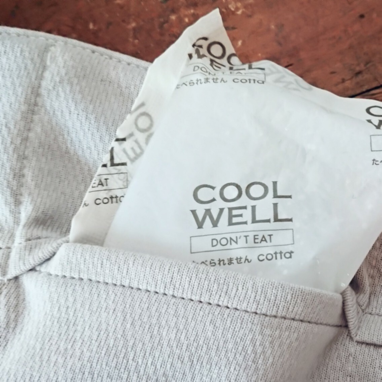 内側の肌に当たる布地にはクール素材を使用し、接触冷感、抗菌防臭、UVカット、速乾の特長あり。(こちらは別の素材に変わることがあります。)